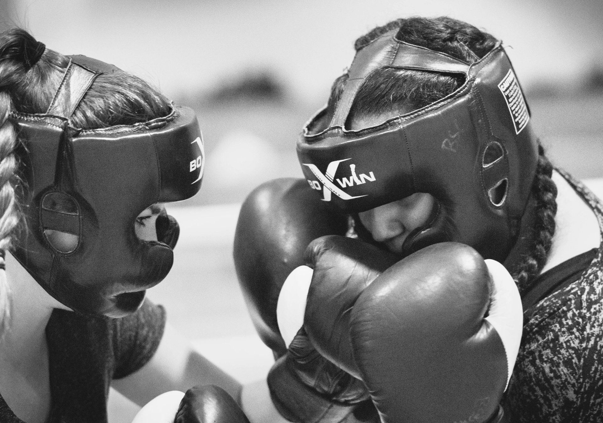 Mettez les bras serrés comme la boxeuse de droite sur la photo ci-dessus. Les mains fermées (poings) contre la mâchoire avec les bras et les avant-bras collés au corps.